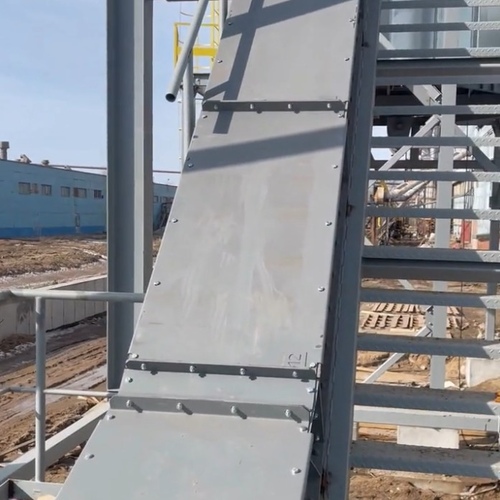 Чудесный экземпляр! Длина конвейера 23 метра. Стоит на самом ответственном участке, где поломки и остановки запрещены. Кстати, вместе с ним поставили и второй - 44-метровый. Стоит рядом. Тоже импортозамещение.